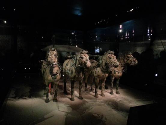 兵馬俑中的精品銅馬車是青銅藝術(shù)發(fā)展的高峰,是皇家馬車的代表作。