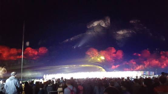 文藝演出是文化旅游中的主要表現(xiàn)手段,是靜態(tài)景觀與動(dòng)態(tài)文化活動(dòng)的有機(jī)結(jié)合,大型室外文化演出可以巧妙利用景區(qū)的自然景觀,達(dá)到虛實(shí)結(jié)合的美好境界。
